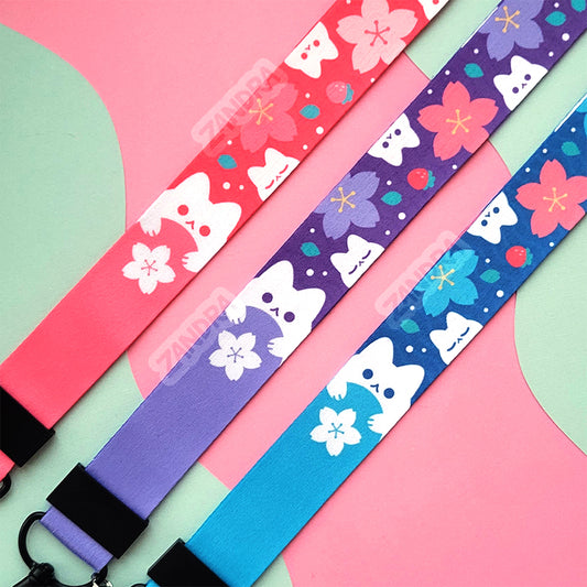 Cherry Blossom Cat Lanyard