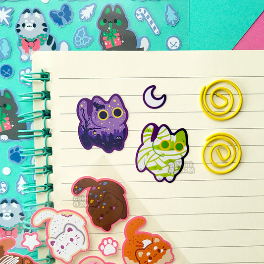 ***PRE-ORDER: Gradient Ghost Cats Glitter 4x6 Sticker Sheet