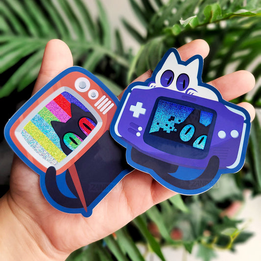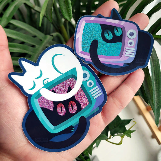 Broadcast Bars TV Cat Static Glitter Vinyl Sticker