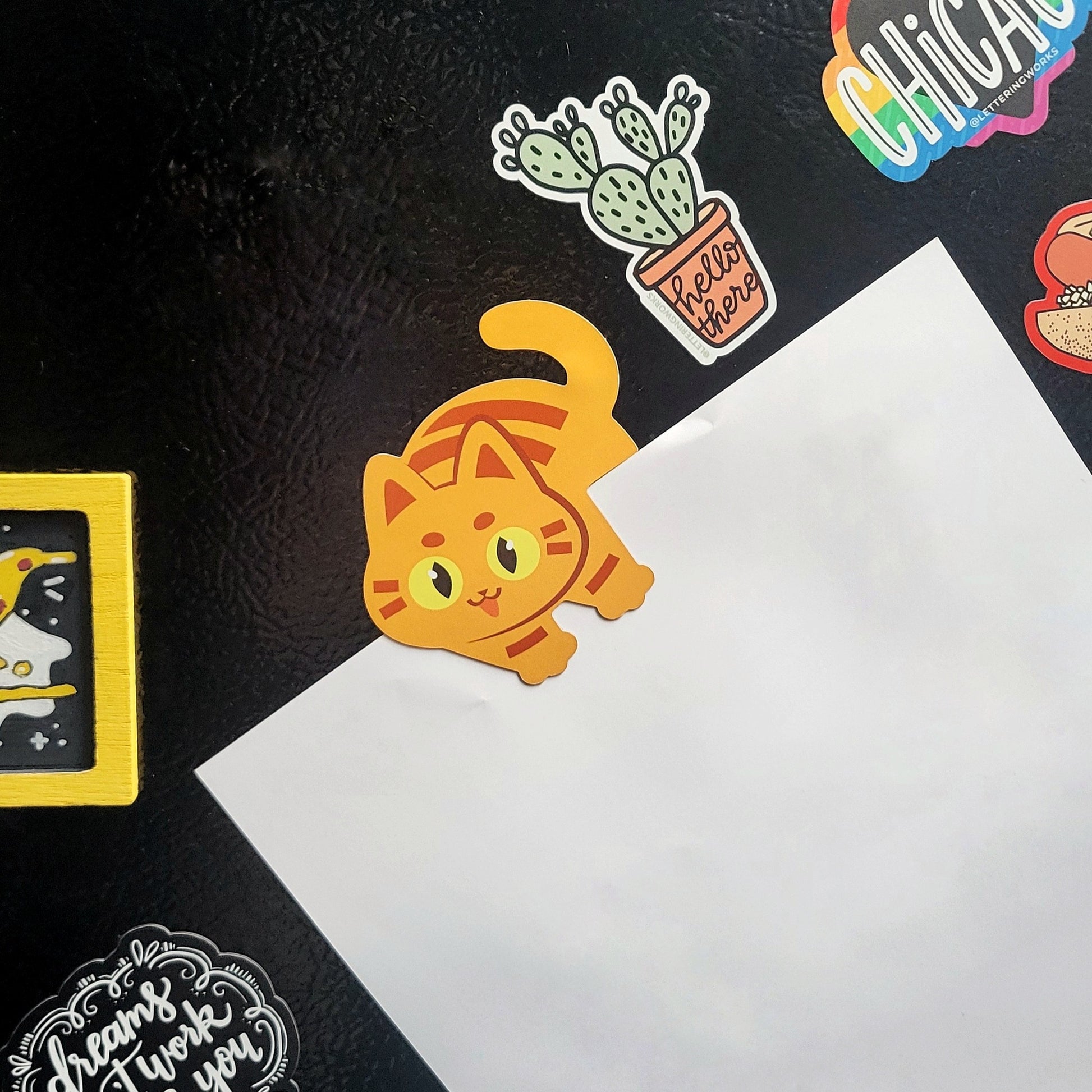 A curious little kitty holding up your grocery list! These cat magnets are designed to look as though a little cat is crawling up from behind your refrigerator papers.
