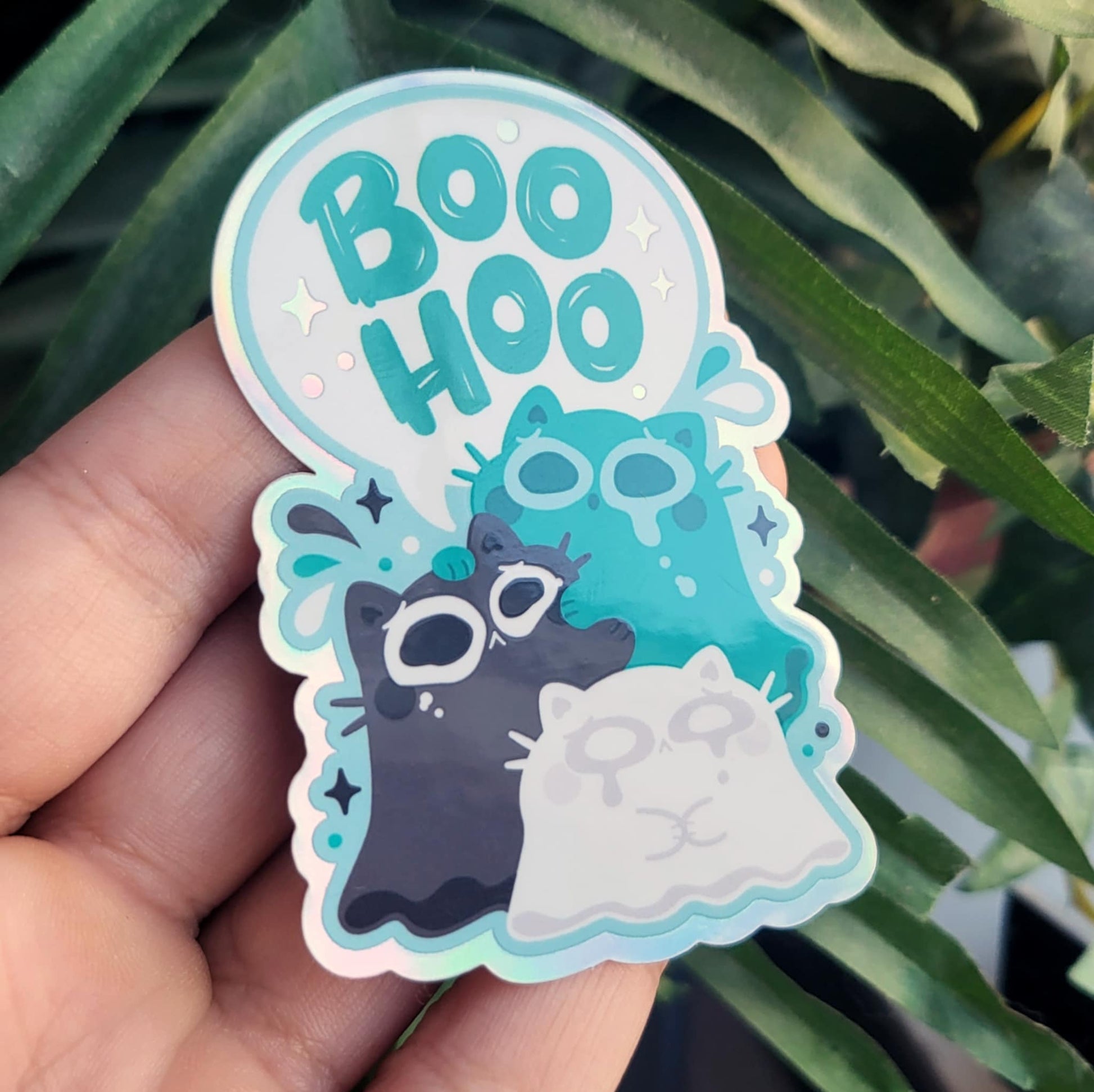 Crying Ghost Cats Holographic Vinyl Sticker by Catmint Studios
